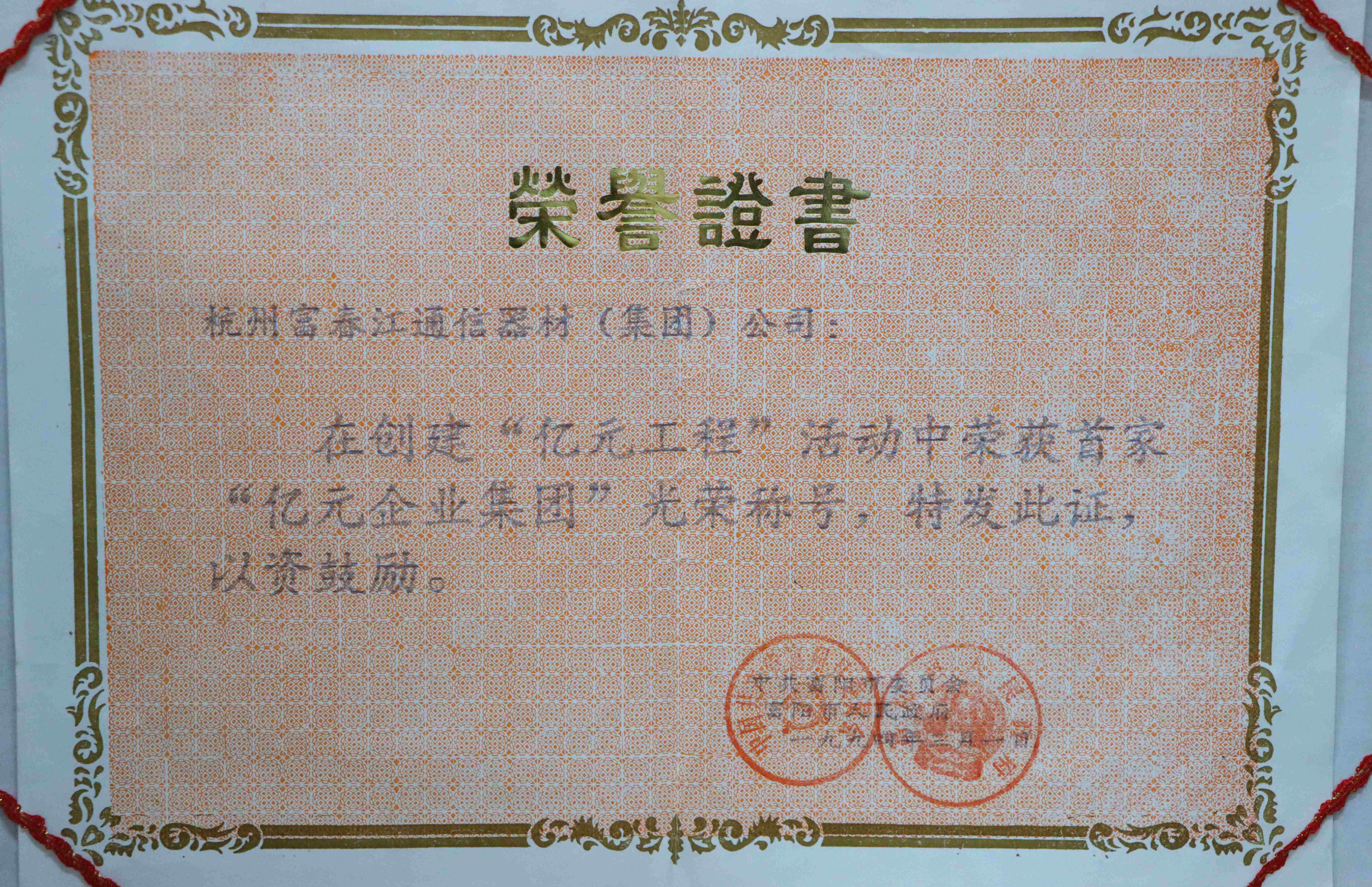 1992年杭州富春江通信器材(集团)公司成立,为富阳首家集团公司