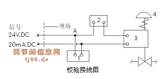 直接由調(diào)節(jié)器或手操器(對需隔離離柵的回路,還需經(jīng)輸出安全保持器),輸出一個(gè)固定的20mA DC電流。經(jīng)電阻箱分流后,就可以得到一個(gè)既安全又可靠的4~20mA DC信號。在現(xiàn)場校驗(yàn)定位器時(shí),其接線如圖所示。