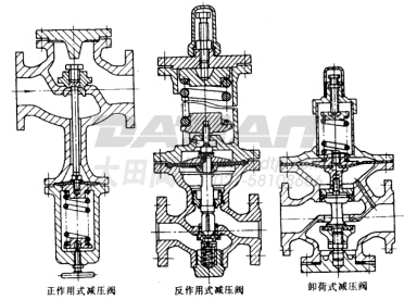 | 直接作用波紋管式減壓閥 | 工作原理同上。只是上述薄膜由波紋管代之。 | ![]() |