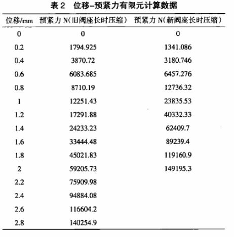系統(tǒng)加載后球體與左閥座是否脫開圖3閥座幾何尺寸根據(jù)計算參數(shù)和圖表,舊閥座的63為1.2 mm,新閥座的為0•82 mmo由4」的公表2位移一預緊力有限元計算數(shù)據(jù)位移/ ] 預緊力 NC舊閥座長時壓縮) 預緊力N(新閥座長時壓縮 )式判斷出,在安裝新或舊閥座時,系統(tǒng)加載后閥門的球體均未與左閥座脫開。