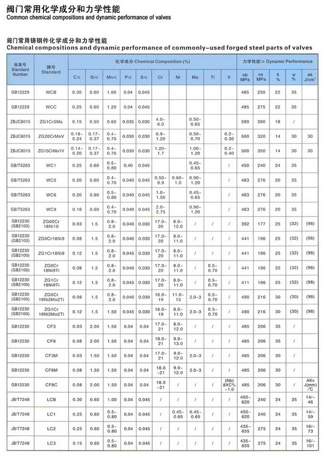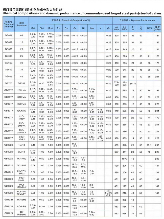 閥門(mén)常用鍛鋼件(鋼材)化學(xué)成分和力學(xué)性能